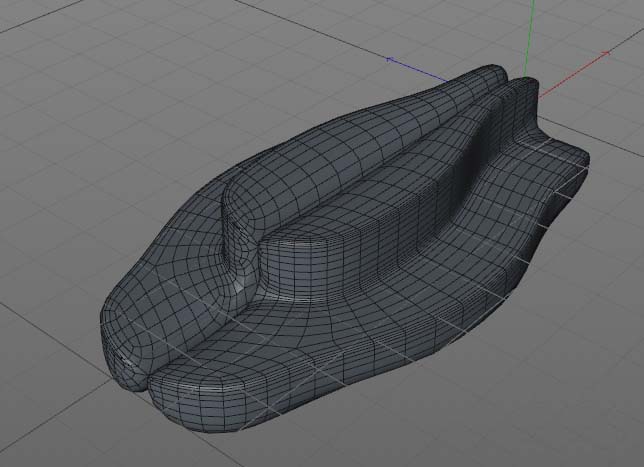 问题这就来了:加上细分后,原本应该连为一体的模型,在对称中心处竟然分开了,成了两个独立的体块。
