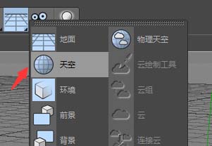 破碎的形态有了,现在要为它赋予“镜子”的质感。首先,新建一个“天空”对象作为环境,这能为后续的玻璃反射提供基础。