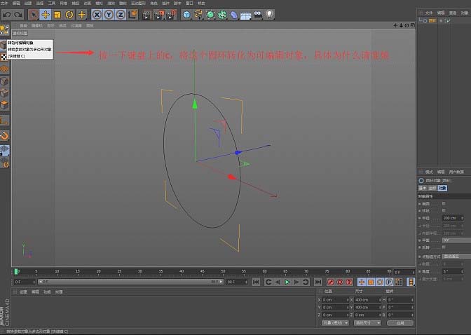 我们先从创建一个圆环开始。当然,你也可以选择任何你喜欢的样条形状作为起点。创建完成后,按下快捷键C,将圆环转换为可编辑对象。这一步是后续所有变形操作的基础。
