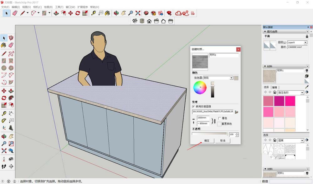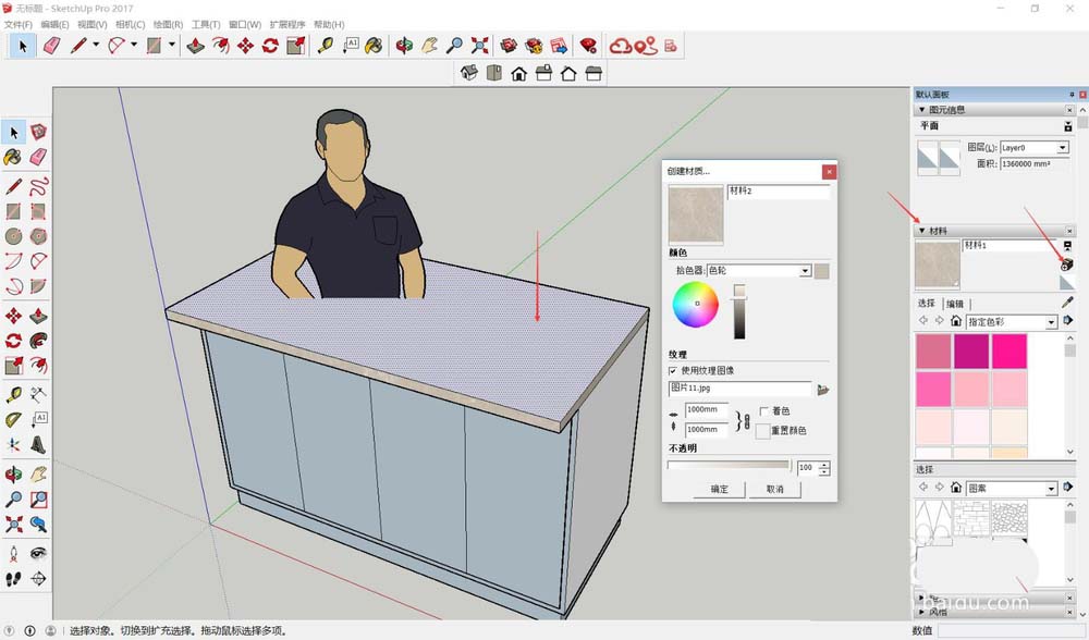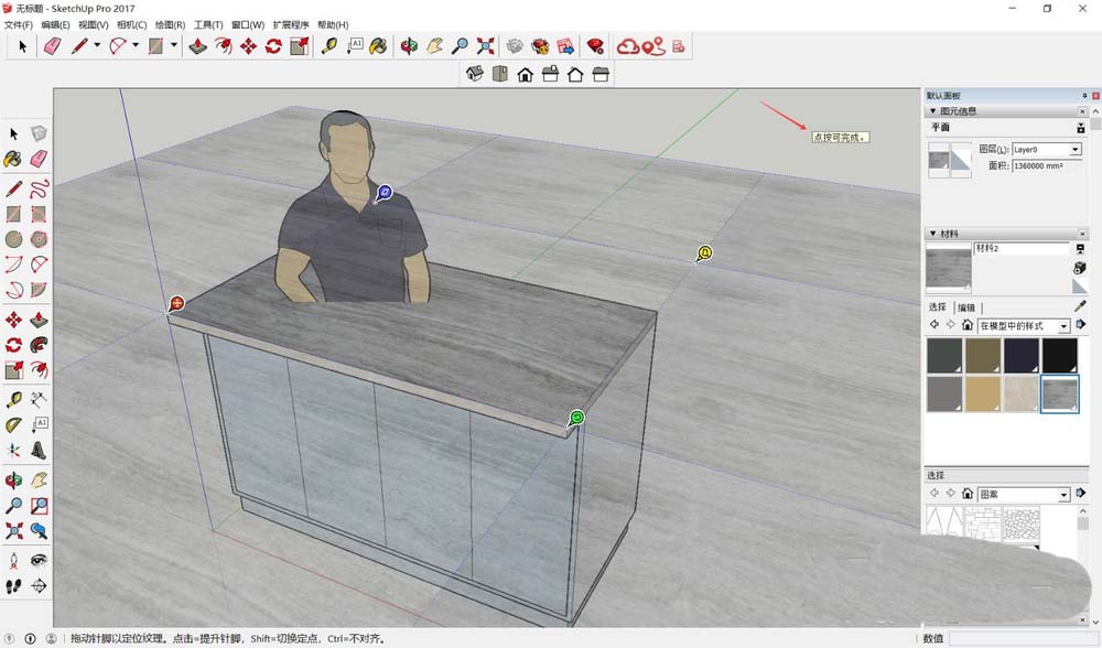 点击材质缩略图,光标会变成油漆桶形状。在台面上单击,材质就贴上去了。但问题来了:初次贴图往往比例失调,要么纹理太大显得粗糙,要么太小失去质感。别急,这才是调整的开始。
