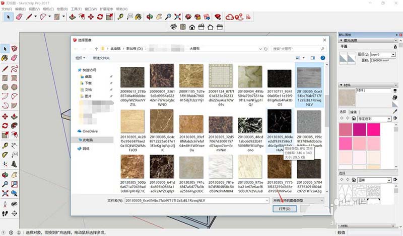 接下来要选择具体的材质图案。点击“浏览材质图像文件”,系统会引导你打开本地的材质库。建议平时就整理好常用的材质文件夹,这样挑选起来效率更高。找到合适的大理石纹理后,点击“打开”确认。