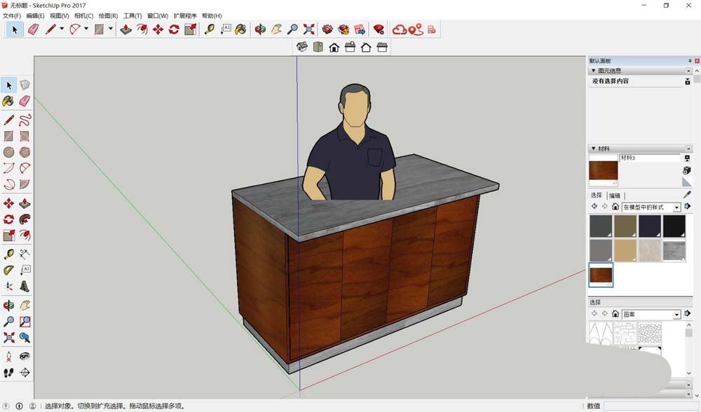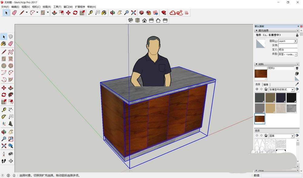 今天咱们就以一个吧台模型为例,完整走一遍SketchUp贴材质的流程。打开你的模型文件,我们先从最基础的平面开始操作。