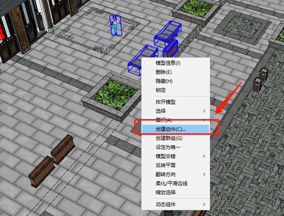 选中之后,点击鼠标右键。在弹出菜单里,找到并点击“创建组件”。这一步至关重要,它相当于给你的模型套上了一个统一的“缩放框”。