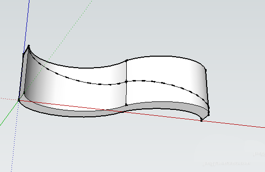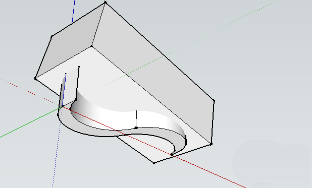 3. 有了平面支撑,就轮到“推拉”工具登场了。用它将刚才绘制的曲线平面向上拉伸,得到一个实心的曲线体块。你看,坡道的雏形这不就出来了吗?
