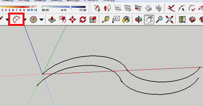 2. 绘制曲线坡道的基础轮廓。选择“圆弧”工具,先勾勒出两条相向的平滑曲线。线条画完后,记得把它们首尾相连,快速形成一个封闭的平面。这个平面就是坡道未来的基本路径了。