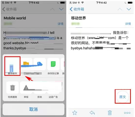 翻译完成后,界面会变得一目了然。邮件原文和翻译后的文本会并排显示,这种对照布局考虑得很周到。即使你对原文语言一无所知,现在也能毫不费力地把握邮件的核心意思了。