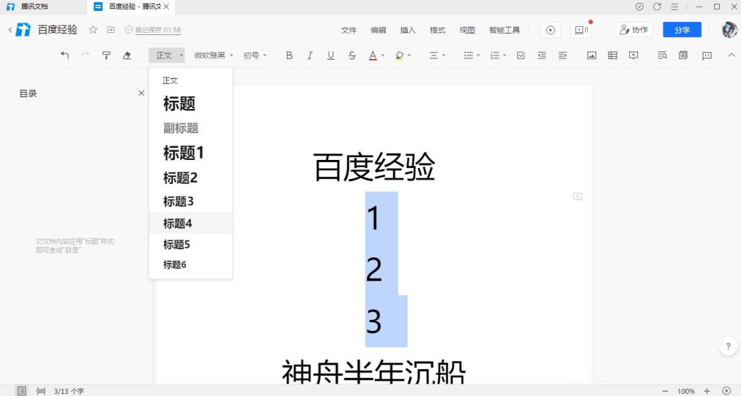 5、文字选中后,目光再回到上方菜单栏。你会发现原本可能是“正文”的按钮,现在需要你点击它。