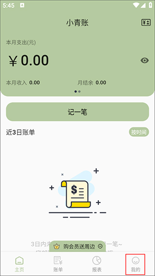 首先打开小青账App,进入首页后注意右下角的“我的”入口,点击这里进入个人中心。
