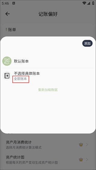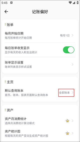进入记账偏好后,会看到“全部账本”的菜单项,点击进入账本管理界面。