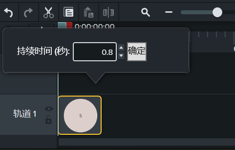 右键单击时间轴上的标注,在弹出的菜单栏中选择“持续时间”,将其设置为0.8秒。