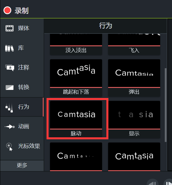 图片5:Camtasia脉动行为添加