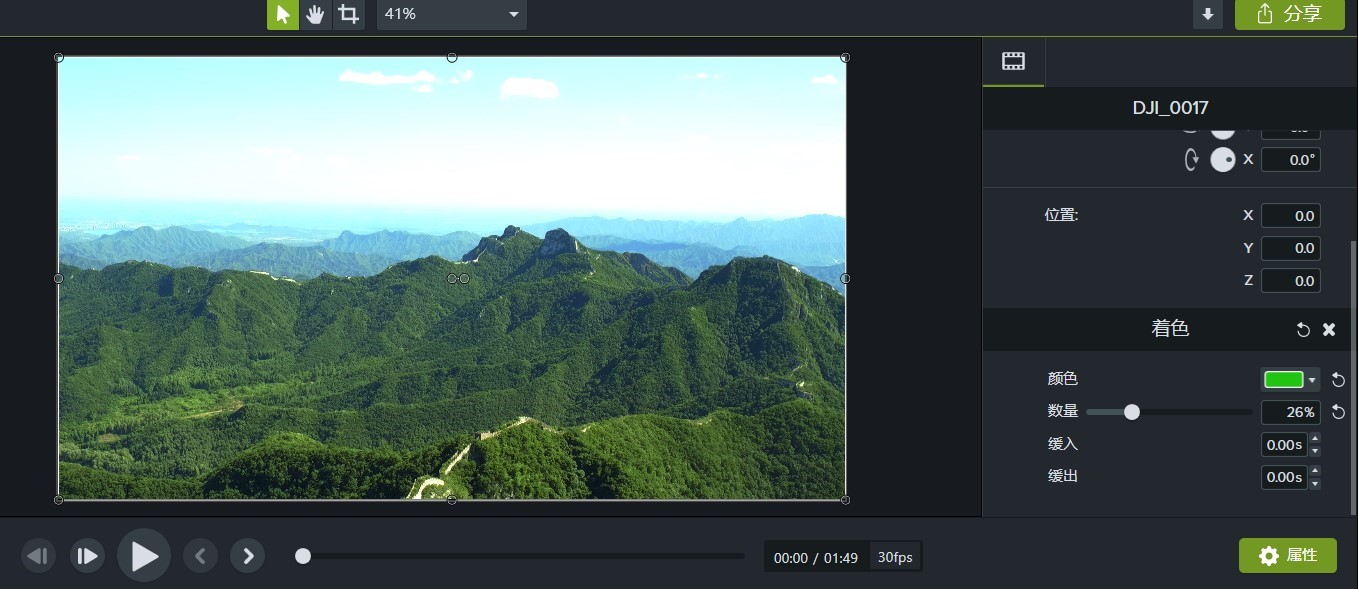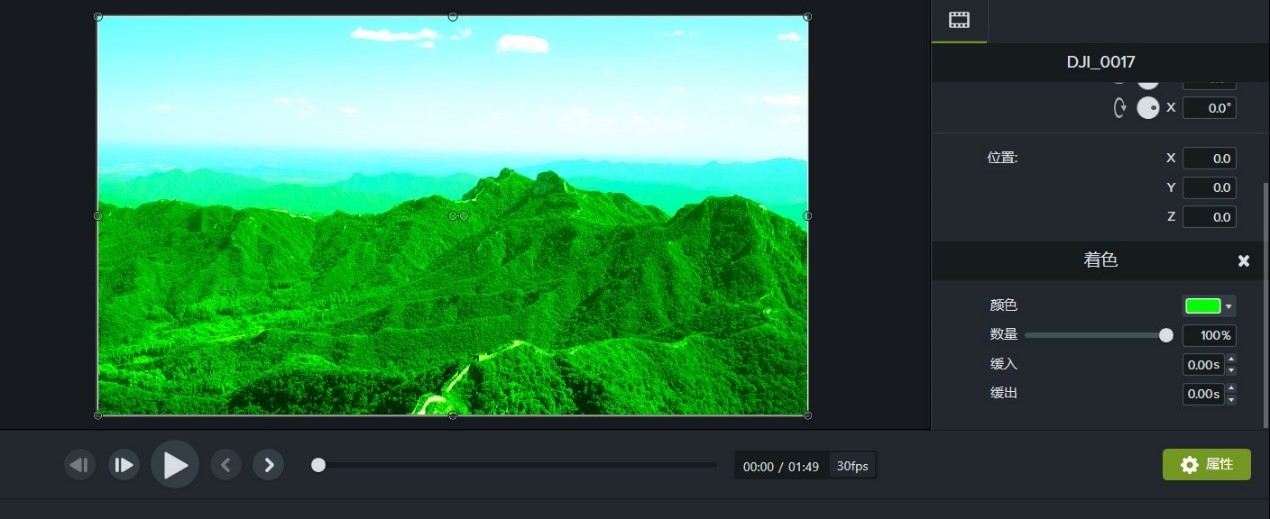在这里我选择了这个颜色,主要是想实现一种翠绿,充满生机的感觉。对颜色画面的处理没有统一的要求,一切都取决于自己的审美和整个片子的基调。