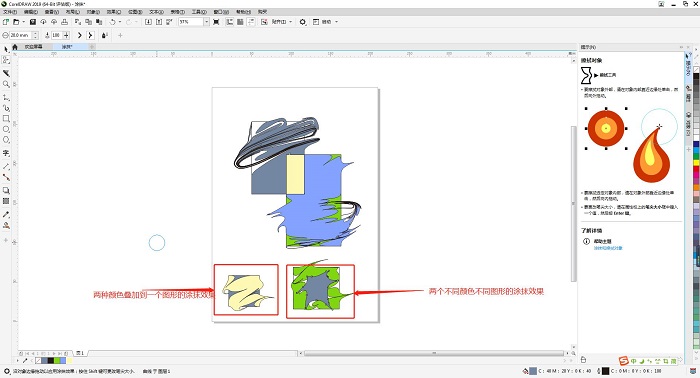 CorelDRAW平面设计软件支持用户在一个图形上叠加多种颜色进行涂抹混色,也支持用户在不同图形上填充不同颜色进行混色,方便用户做出自己想要的效果图。