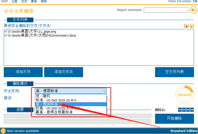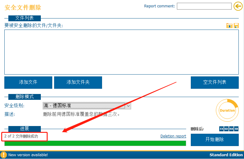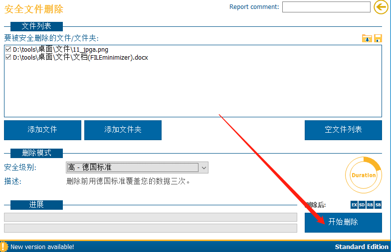 5.设置好删除模式之后我们点击右下角的开始删除按钮,点击之后即可开始删除选择的这些文件。