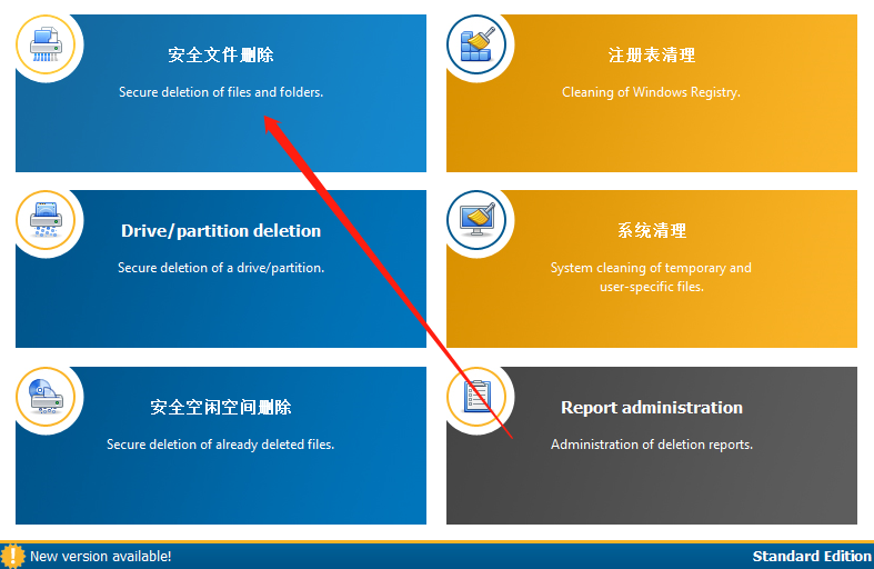 1.首先第一步我们打开软件之后在界面中找到安全文件删除这个选项,然后点击它进入到文件删除界面。