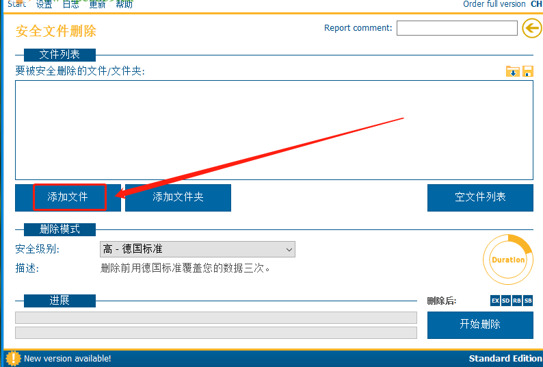 2.进入到文件删除界面之后,我们在界面中点击添加文件按钮,点击之后即可添加想要删除的文件。
