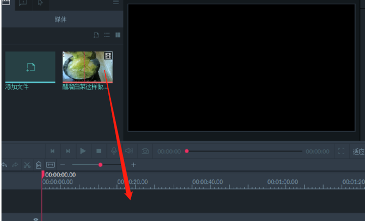 4.将需要剪切的视频文件成功加载到软件之后,我们点击选中视频然后将它移动到下方的操作台中。