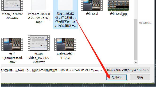 3.点击之后下一步就可以在打开的选择文件界面中选择想要剪切的视频文件了,选中之后点击打开按钮即可。