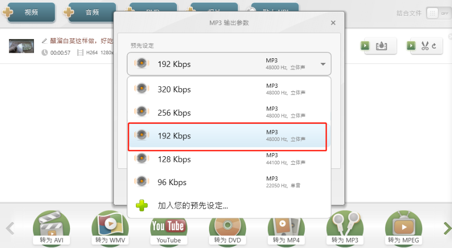 4.点击转换MP3之后就会打开转换的界面,在这个界面中我们打开下拉列表选择想要转换的音频类型。