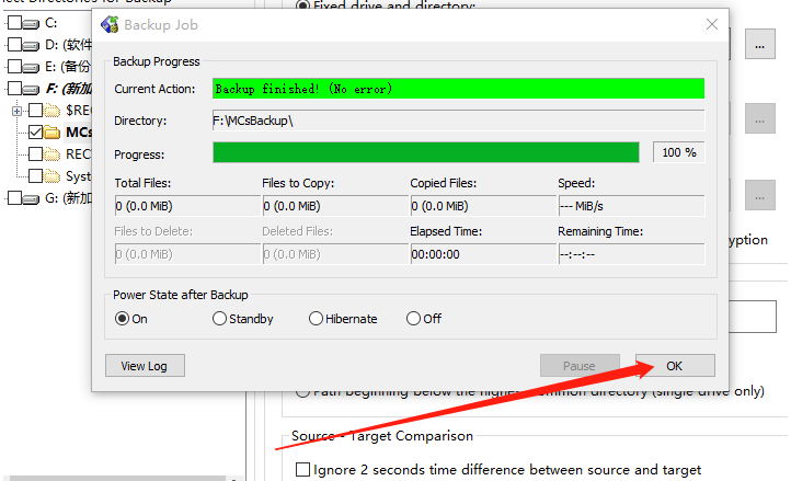 5.点击开始备份文件之后在界面中会显示一个备份文件的进度界面,等到备份完成就可以看到进度为100%了,点击OK按钮即可关个界面。