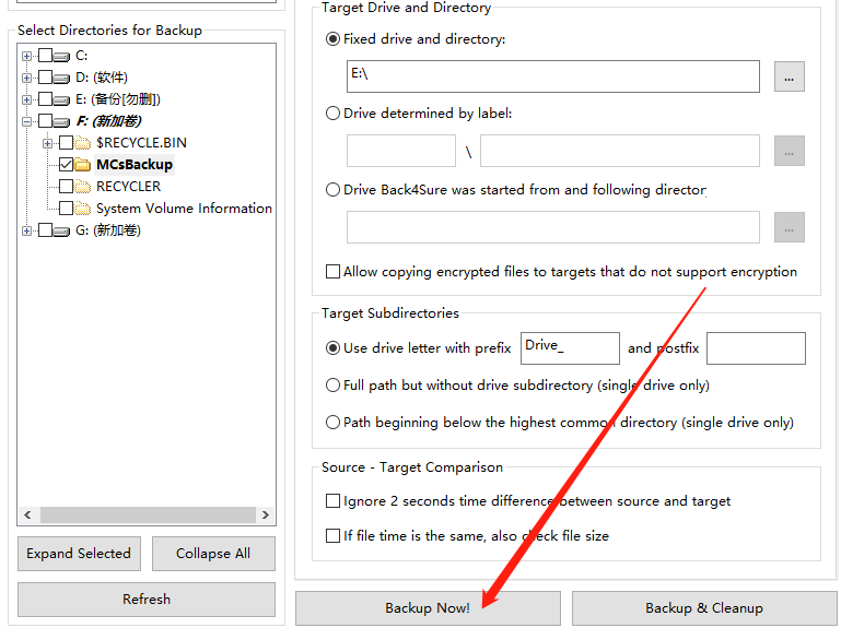 4.点击确定按钮选择好想要备份文件的目的地址之后,下一步就可以点击界面下方的Backup Now这个现在备份按钮来开始备份文件了。
