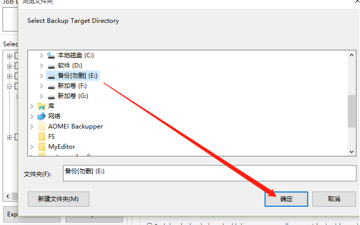 3.点击三点按钮之后在出现的界面中即可选择文件备份的目的地址,选择之后点击右下角的确定按钮即可。