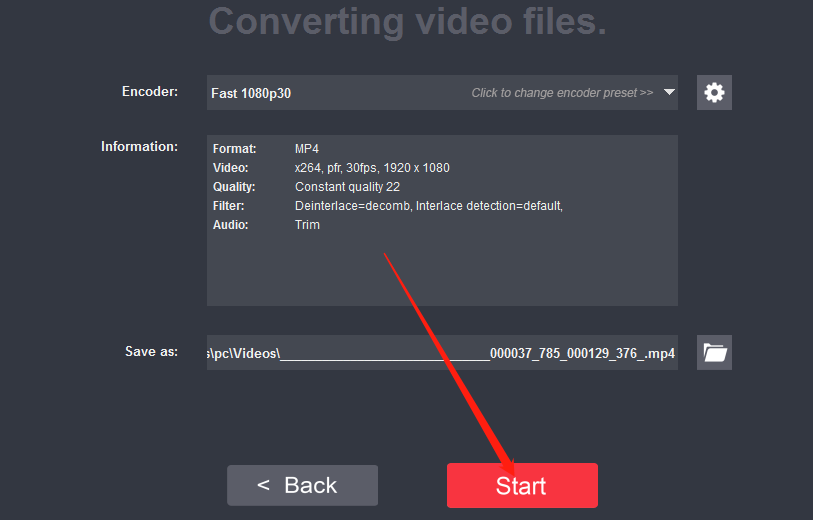 7.点击OK按钮之后最后一步就是在下图所示的界面,点击界面中的Start开始按钮就可以开始剪切视频的操作了。