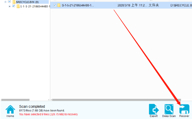 4.之后我们根据个人的需求打开文件类型查看想要恢复的文件,找到想要恢复的文件之后点击勾选他前面的方框,然后点击右下角的Recover这个功能按钮开始恢复。