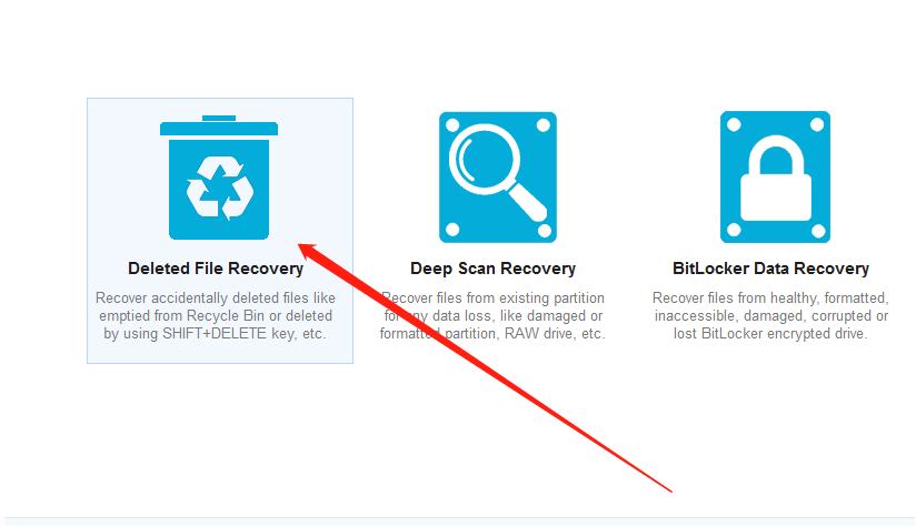 1.首先第一步我们打开软件之后在界面中找到删除文件恢复这个模块,也就是第一个功能模块,然后点击进入到其中。