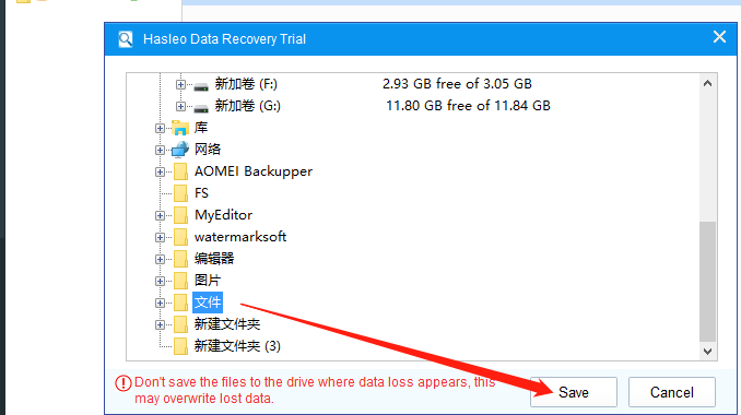 5.点击恢复按钮之后会出现一个选择保存恢复文件路径的界面,我们在其中选择想要保存恢复文件的文件夹之后点击Save按钮即可进行恢复。