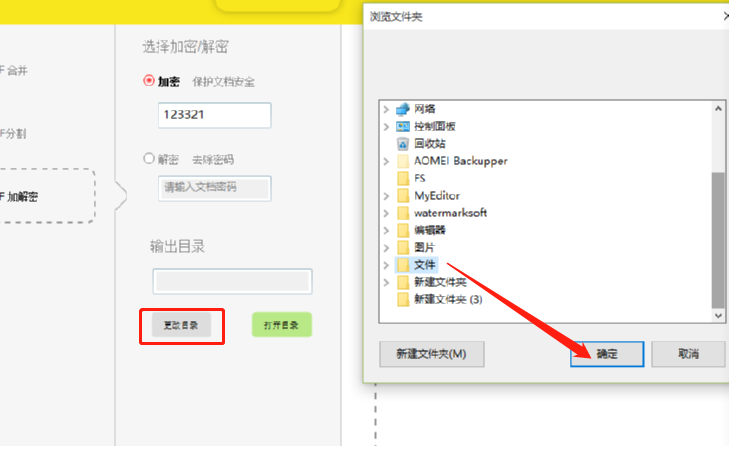 3.输入密码之后下一步我们可以点击界面中的更改目录按钮来设置文件加密之后的输出储存位置,如下图中所示。