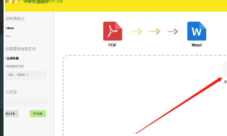 4.设置好输出位置之后我们点击界面右边的加号即可添加想要加密的PDF文件,在界面的最右边即可看到加号图标。