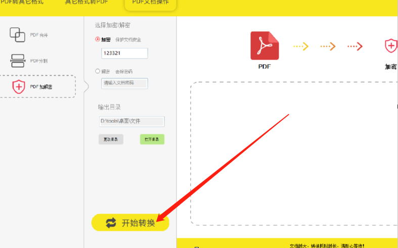 6.最后一步我们将需要加密的PDF文件添加到加密功能界面之后,点击界面中的开始转换这个功能按钮就可以开始加密PDF文件的操作了。