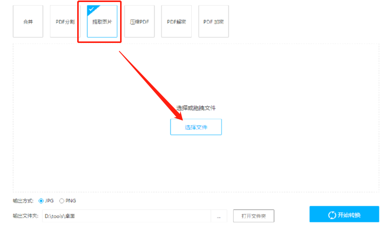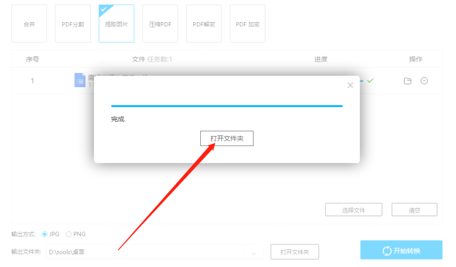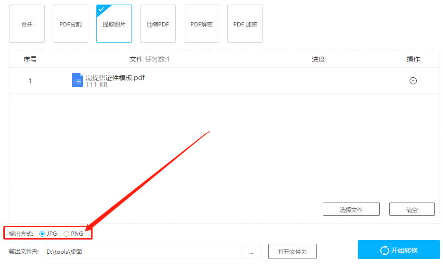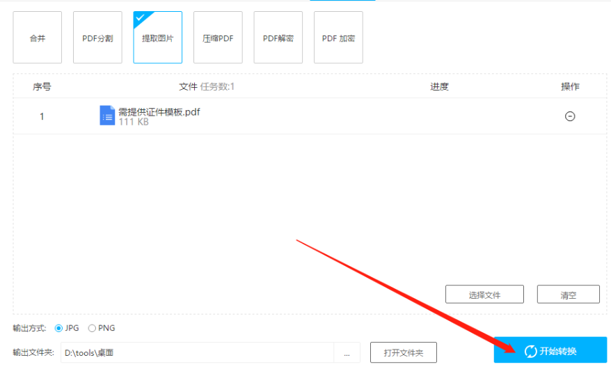 4.选择好输出格式之后我们点击界面右下角的开始转换按钮即可开始提取图片的操作。