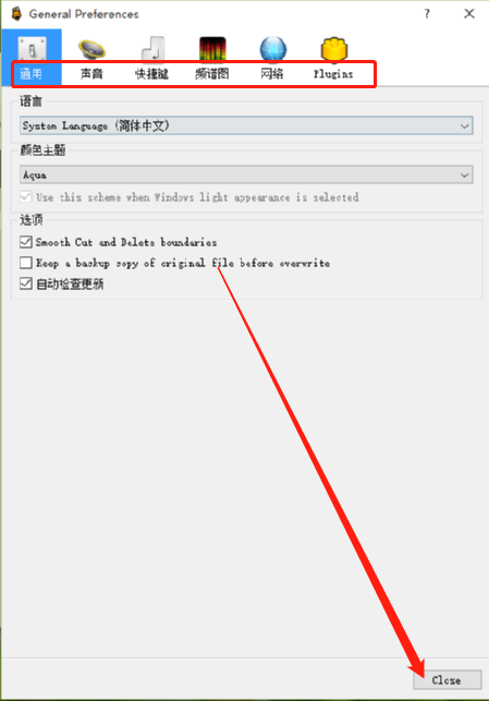 4.点击将语言选项设置为简体中文之后,我们就可以看到软件界面已经变成中文的了,点击设置界面下方的Close关闭按钮关闭设置界面即可。