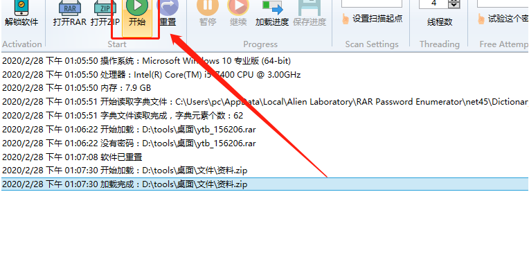4.需要设置密码参数的用户设置完成之后回到软件的主界面中,然后我们就可以在界面上方点击开始这个功能按钮了,点击之后软件注册购买软件即可进行解密。