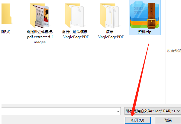2.点击之后软件会打开一个选择文件的界面,在这个界面中我们选中想要解密的压缩文件之后点击下方的打开按钮将它加载进来。