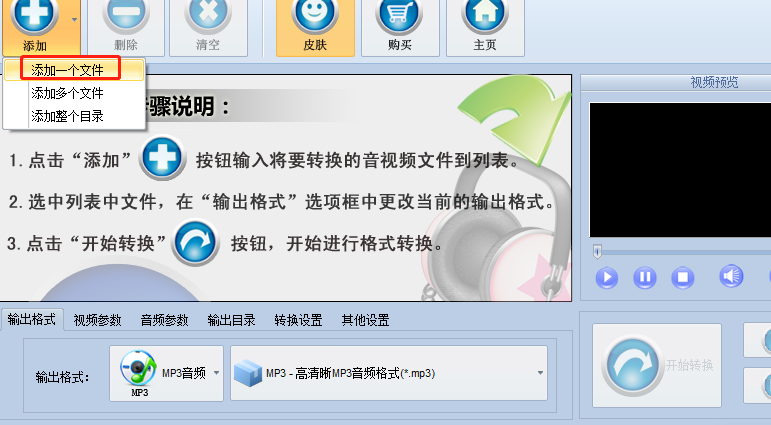 1.首先第一步我们打开软件之后在软件界面的左上角点击添加按钮,然后选择添加一个文件选项并点击进去。