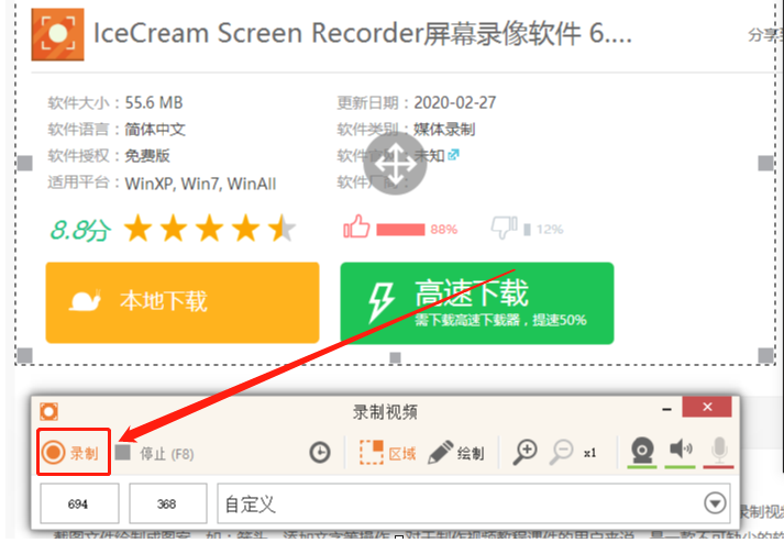 使用上述教程中的操作方法我们就可以通过IceCream Screen Recorder这款软件来自定选取区域进行视频录制了,有需要的朋友赶紧试一试这个方法吧,希望能够对大家有所帮助