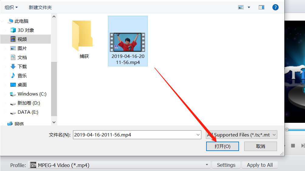 2.点击添加文件之后下一步就是在浏览文件的界面中选择想要转换的那一个文件,选择之后点击打开按钮即可。