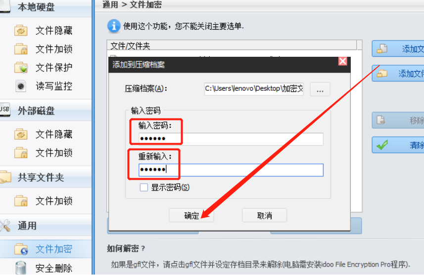 5.点击保存按钮之后在软件的界面中会出现一个设置密码的界面,我们在其中输入自己想要设置的密码之后点击确定按钮即可开始加密文件的操作。