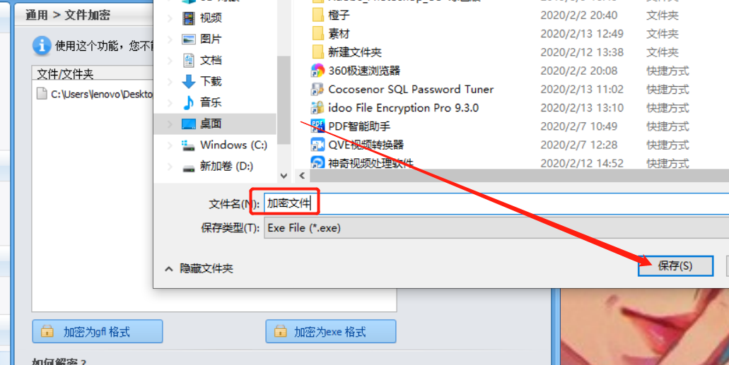 4.点击选择要加密的格式之后下一步会需要我们设置加密文件的保存路径,选择好路径之后设置文件的名称,然后点击保存。