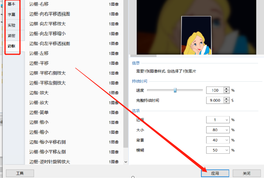 5.然后下一步就是对每张图片都使用同样的方法设置幻灯片样式,全部设置完成之后点击界面右上角的预览按钮可以预览幻灯片的整体效果。
