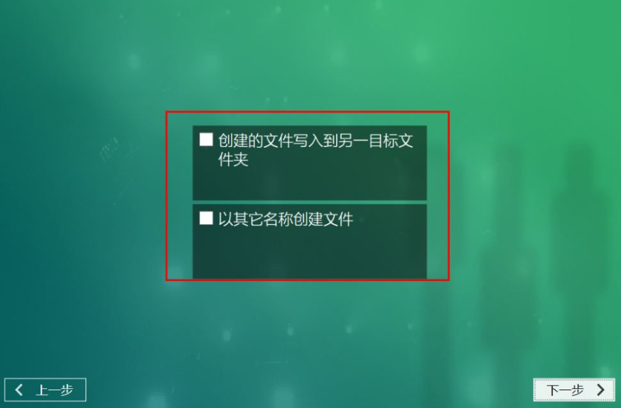 10、用户点击【下一步】,进入如下的目录,然后即可选择【创建的文件写入到另一个目标文件夹】或者【以其他名称创建文件】两种方式。