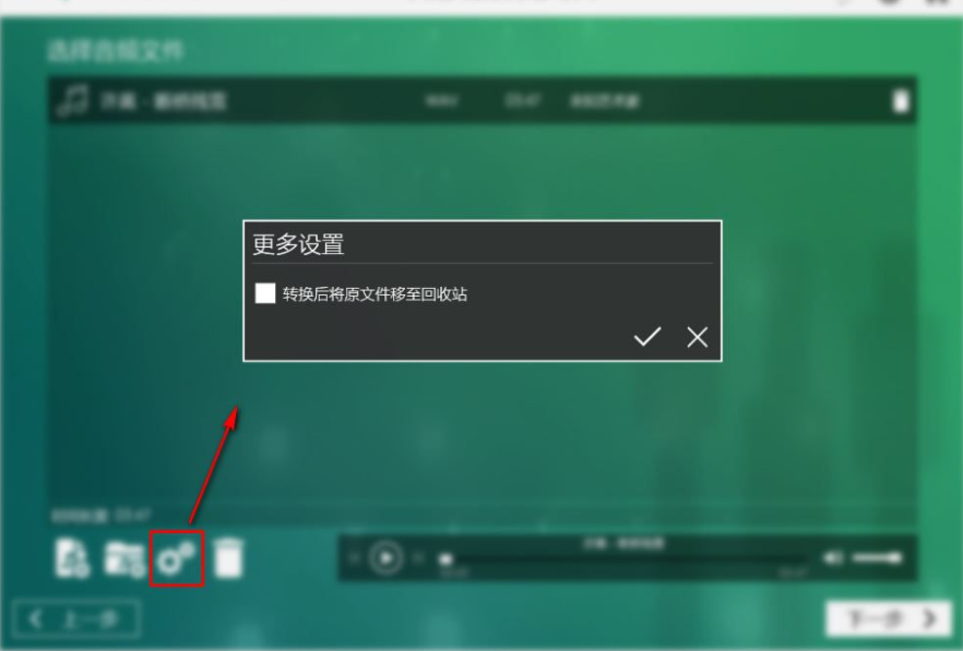 5、用户点击【更多设置】按钮,在呼出的更多是在选项可以根据需要选择是否勾选【转换后将原文件移至回收站】,然后点击【下一步】继续。
