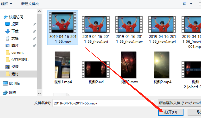 3.点击添加按钮之后下一步就是在出现的界面中选择要剪切的视频文件,选中之后点击打开这个功能按钮即可。