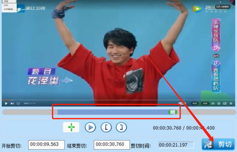 6.等到想要剪切的视频片段的开始时间和结束时间都选择完成之后,下一步我们在界面的右下角点击剪切这个功能按钮。