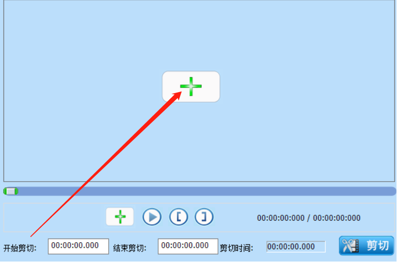 2.进入到视频处理界面之后,在视频剪切这个功能模块中点击加号来添加要进行剪切操作的视频文件。