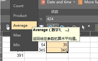 8、除了计算总和之外,我们还可以使用下方的选项来一键计算出平均值等数值