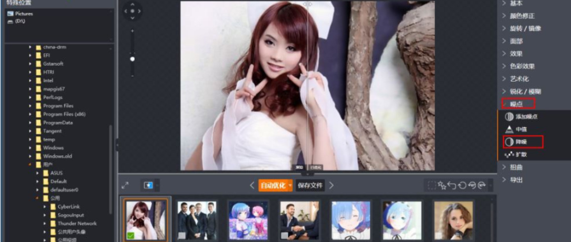 4、用户点击左侧功能栏上的【噪点】,在呼出噪点列表下选择【降噪】,软件自动进行处理。